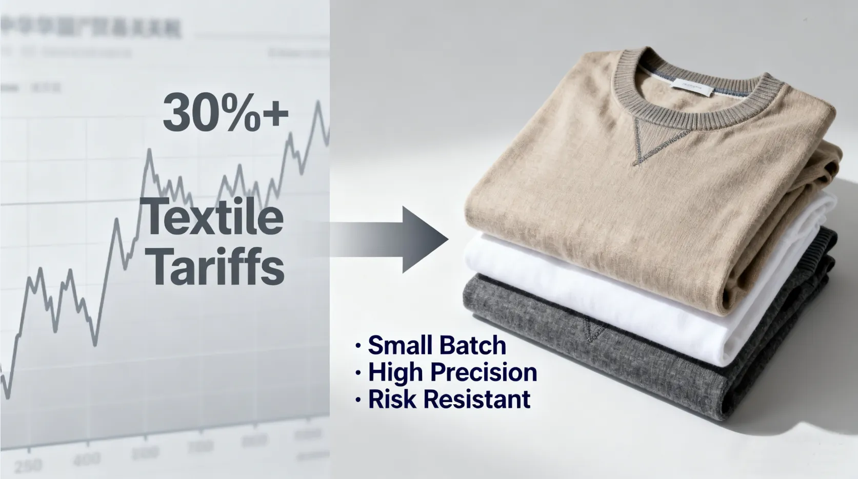 With US-China textile tariffs hovering above 30%, large long-cycle orders hide two pitfalls: policy shifts can wipe out profits, and wrong market bets can drown small brands in inventory. But the “efficiency” of China’s domestic small batches is exactly the antidote.
