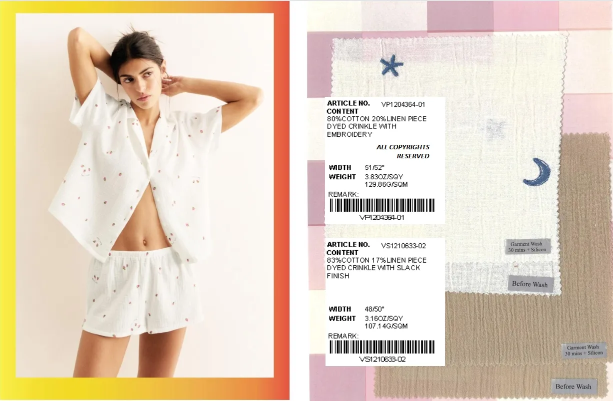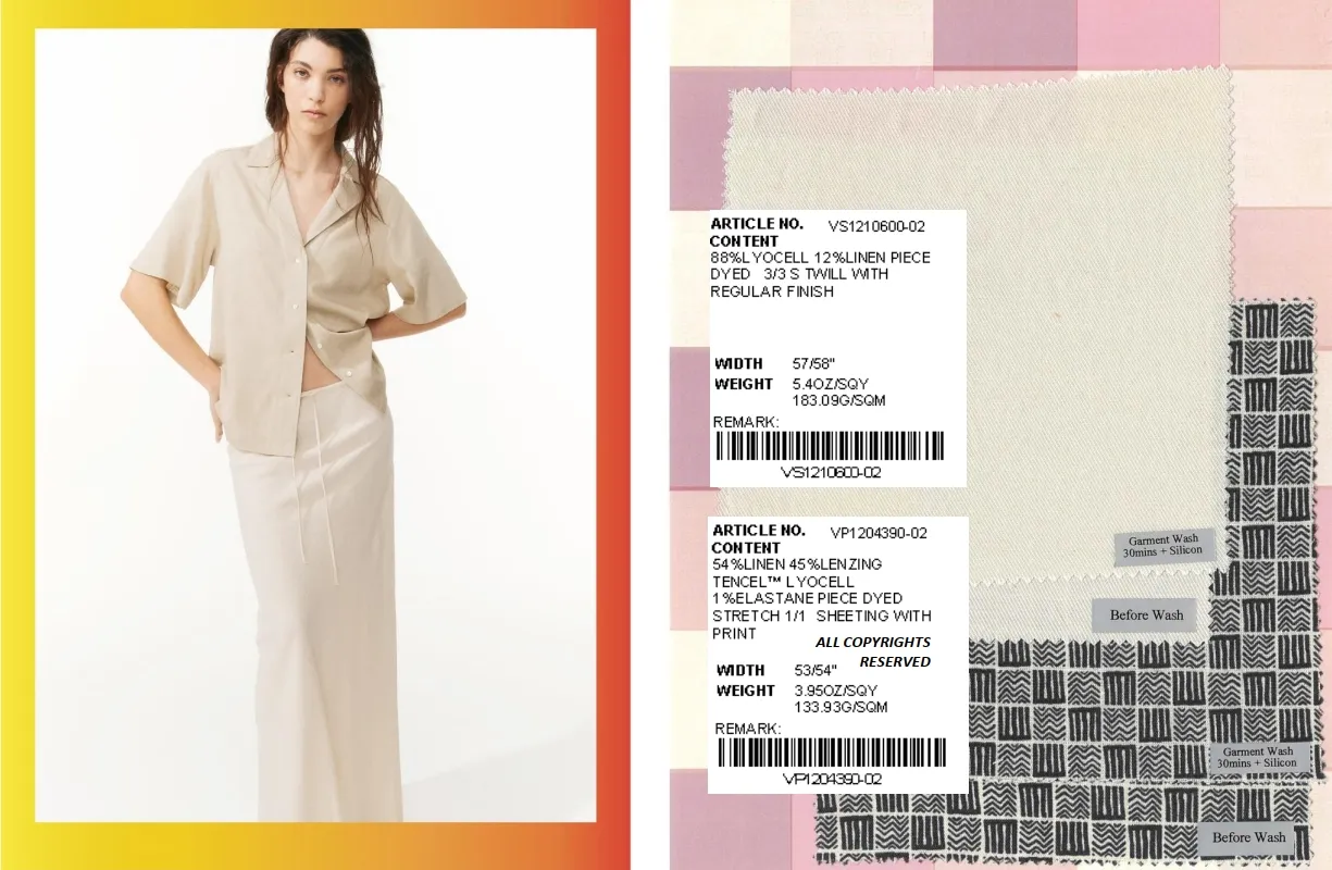 Our collection draws inspiration from relaxed summer aesthetics, featuring everything from bold leopard prints and romantic floral motifs to retro jacquard textures. Each fabric is treated with premium finishing techniques, such as sand washing for a buttery-soft handfeel, aloe vera coating for natural cooling, and garment washing with silicon to reduce wrinkles and enhance drape. The result? Fabrics that feel as good as they look, with the durability to stay vibrant and season after season.