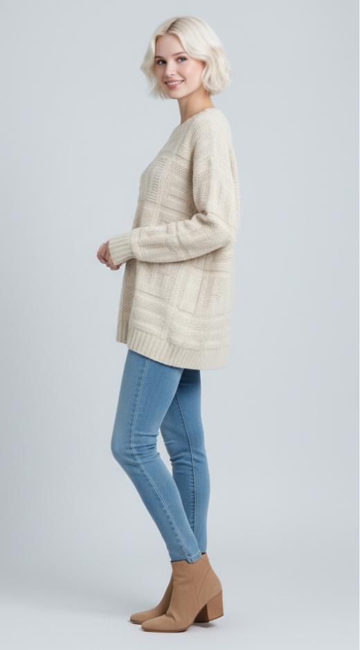 - Fit & Style: Has a relaxed, comfy fit. Perfect for wearing on its own or layering under a jacket. Matches well with jeans, skirts, or trousers for a casual yet polished outfit.
