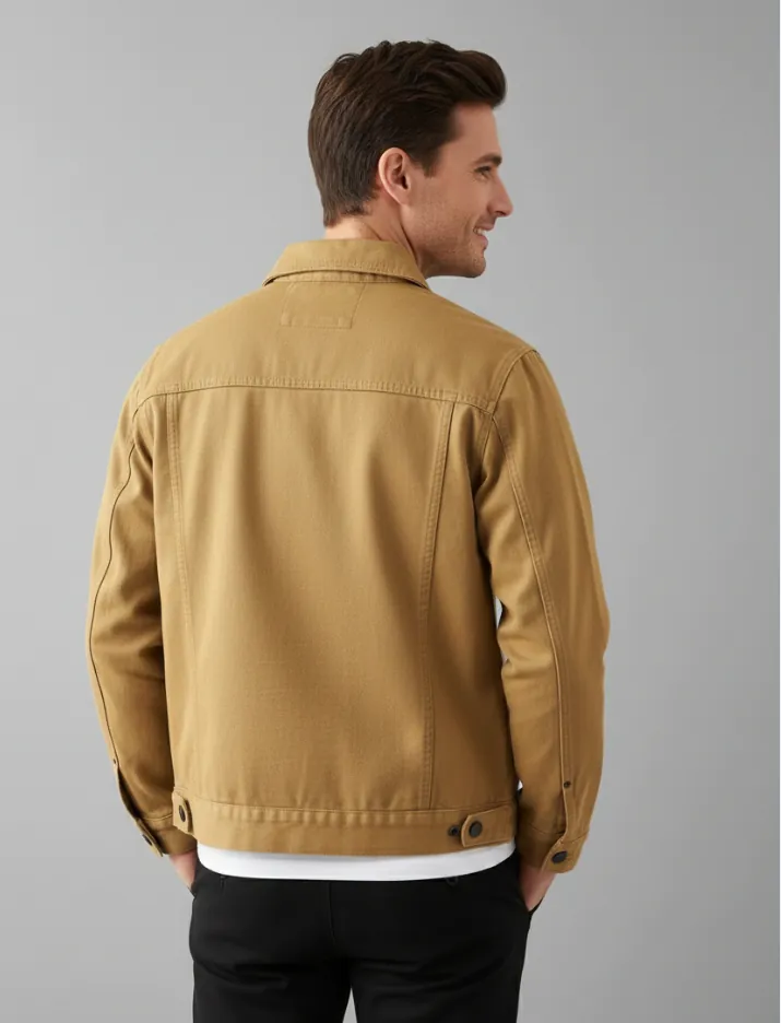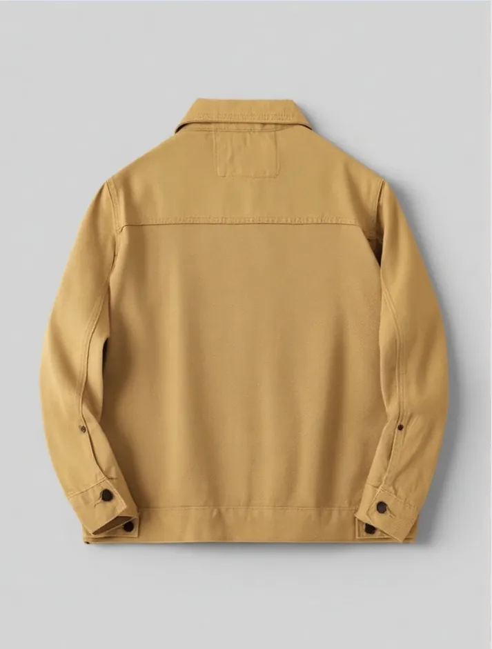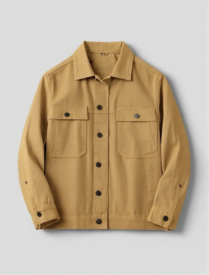 Design: Boasts a classic collar and a row of sleek black buttons down the front. Two roomy chest pockets with button closures add both functionality and a rugged, utilitarian charm. The warm camel hue is rich and versatile, effortlessly elevating any outfit.