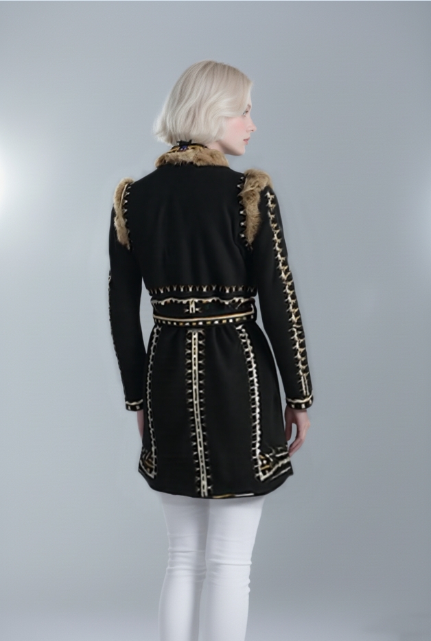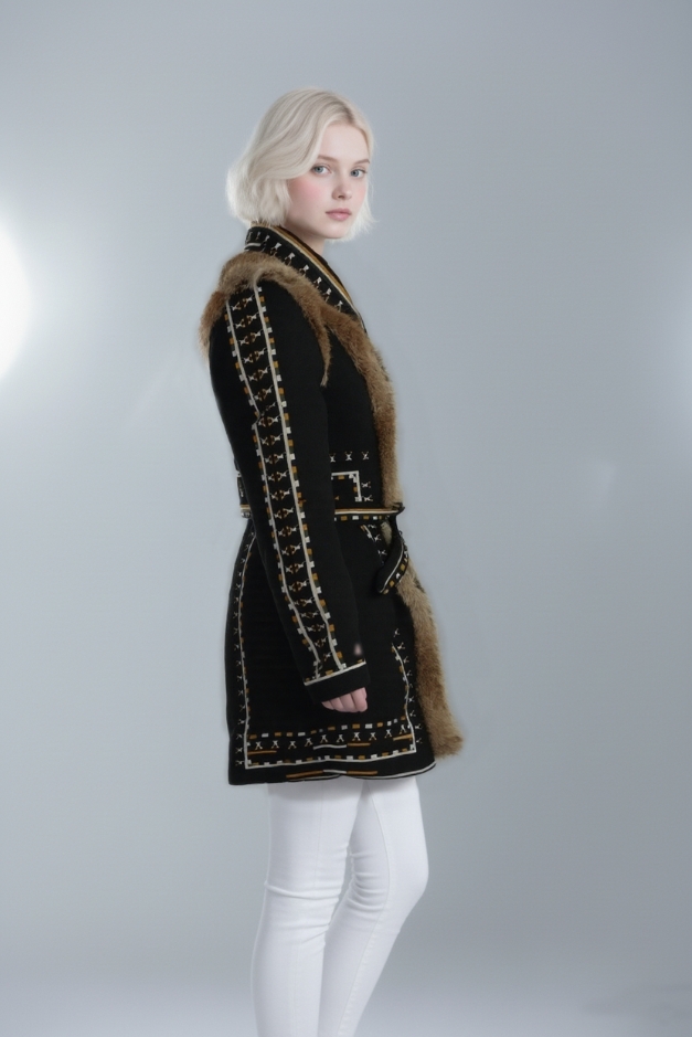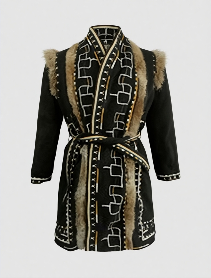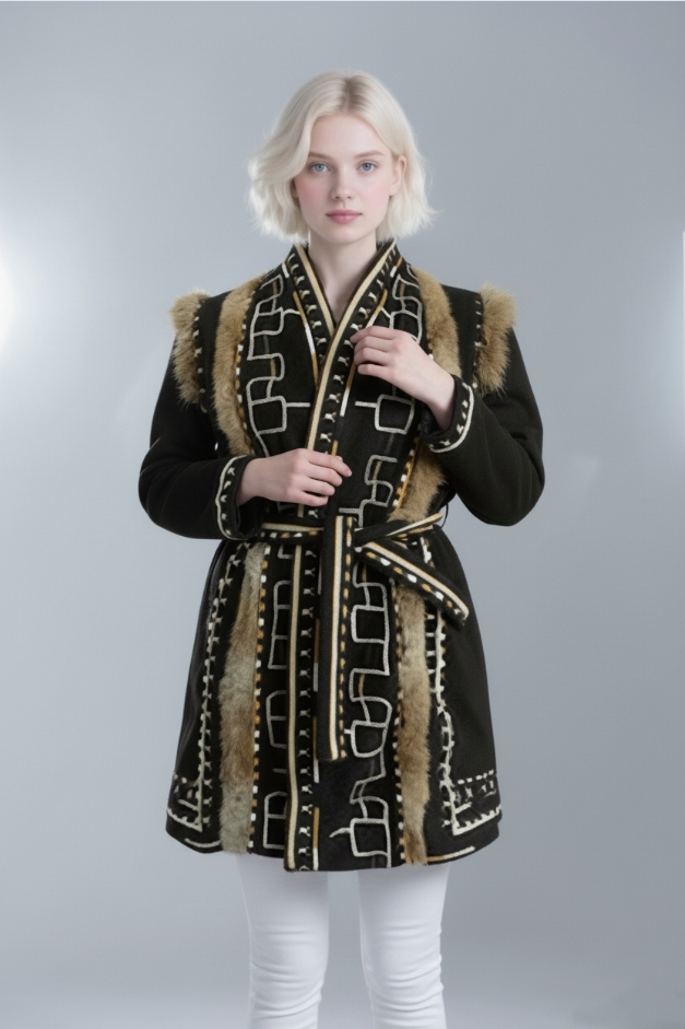 Be the first to review “Embroidered Coat with Fur Trim and Belt”