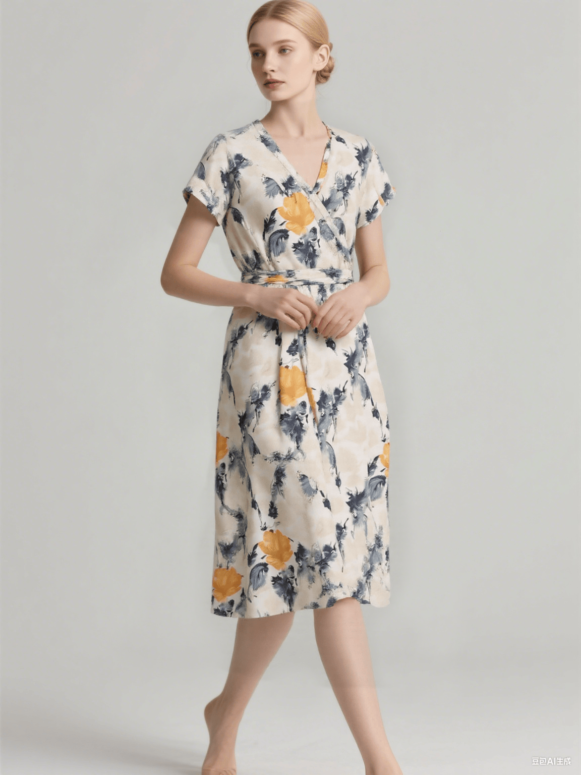 Embrace summer charm with our Floral Wrap Dress with Belt – Beige Base. This lovely dress features a V – neckline, short sleeves, and a belted waist for a flattering fit. The blue floral print with yellow blooms adds a fresh, playful touch—perfect for garden parties, beach vacations, or casual outings.
