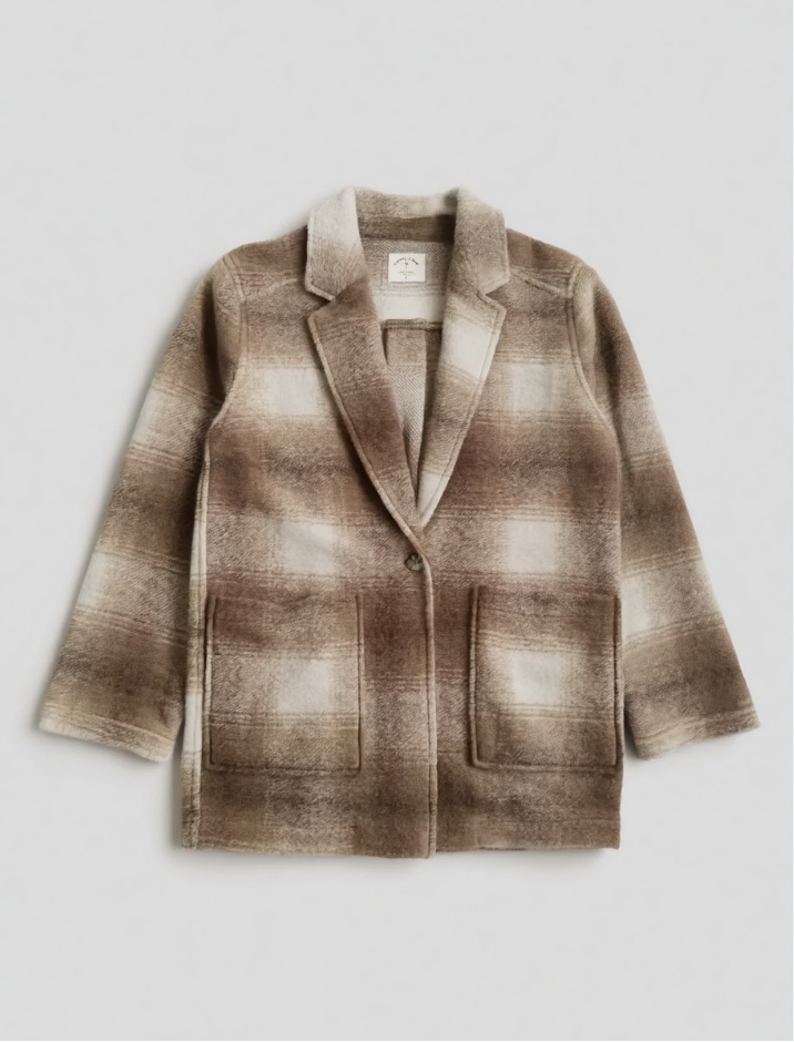 Level up your style with our Fuzzy Plaid Blazer! Made with a wool – blend fabric, it has a classic notch lapel, a single – button front, roomy pockets, and a soft, fuzzy feel—ideal for everyday wear, casual hangouts, or adding polish to your look.