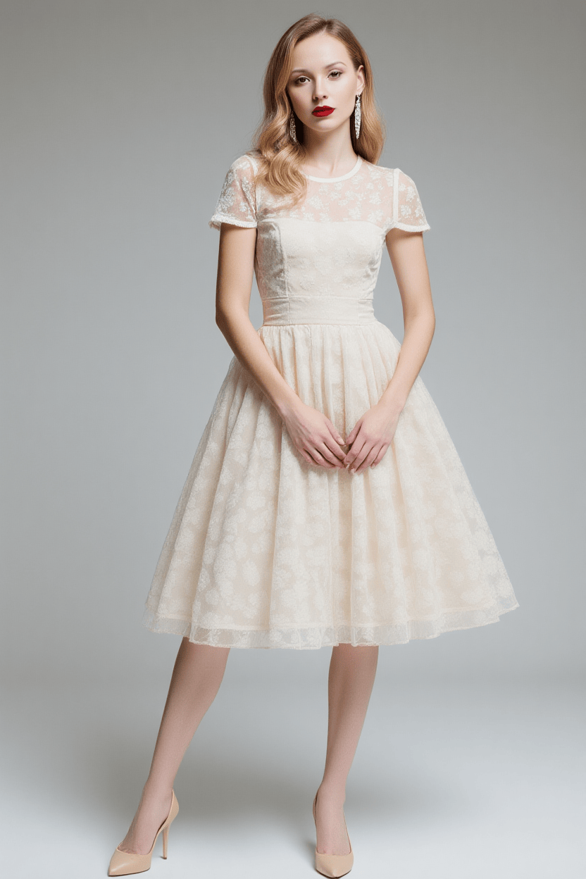 Elevate your elegance with our Lace Overlay Fit – and – Flare Dress – Beige. This timeless dress features sheer lace sleeves, a cinched waist, and a flowy skirt for a feminine silhouette. Perfect for weddings, cocktail parties, or special occasions, it blends romance and sophistication.