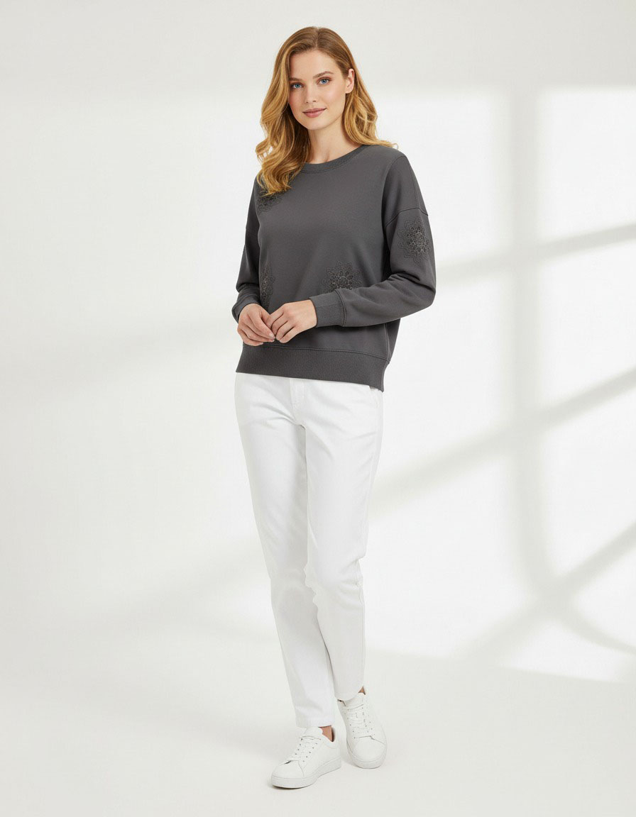 Design:Classic crew – neck design for easy wear; long sleeves for coverage; exquisite hollow embroidery patterns scattered on the front and sleeves, adding a touch of elegance and artistry to the casual style