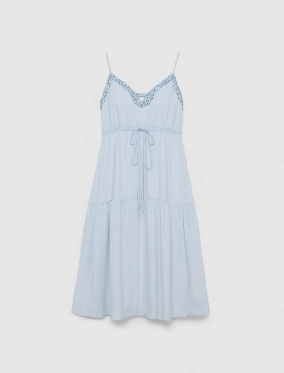 Crafted from a lightweight, flowy fabric blend, this dress skims your figure without clinging, offering all-day comfort that never compromises on style. The adjustable drawstring waist lets you cinch in your shape for a more tailored look, or wear it loose for a relaxed, bohemian vibe. Discreet side pockets add a practical touch, perfect for stashing your phone, lip gloss, or a pair of sunglasses when you’re on the go. The lace-trimmed V-neckline and thin spaghetti straps add a hint of romance, making it ideal for both casual and dressier occasions.