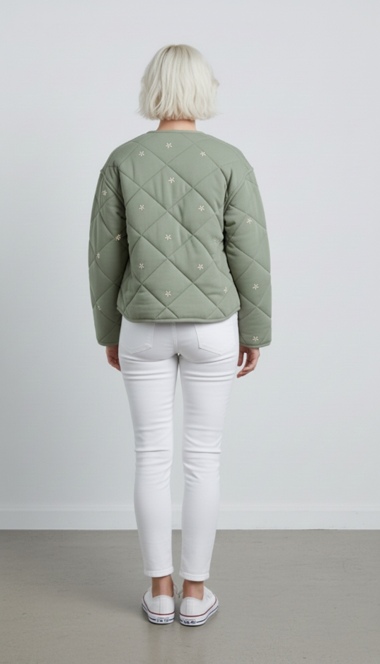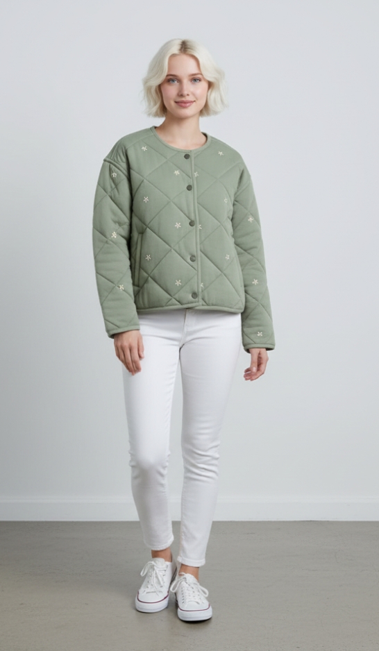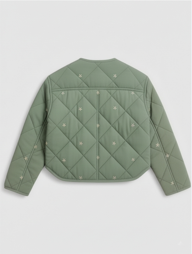 Elevate your style with our 60% Cotton 40% Modal Small Floral Embroidered Quilted Jacket. Crafted from a cotton – modal blend, this jacket features a classic round neck, a diamond – quilted pattern for added warmth, and delicate small floral embroidery, combining comfort with a touch of elegance.